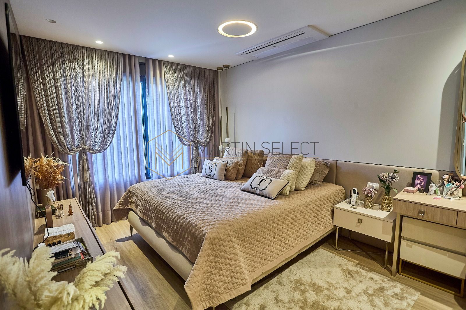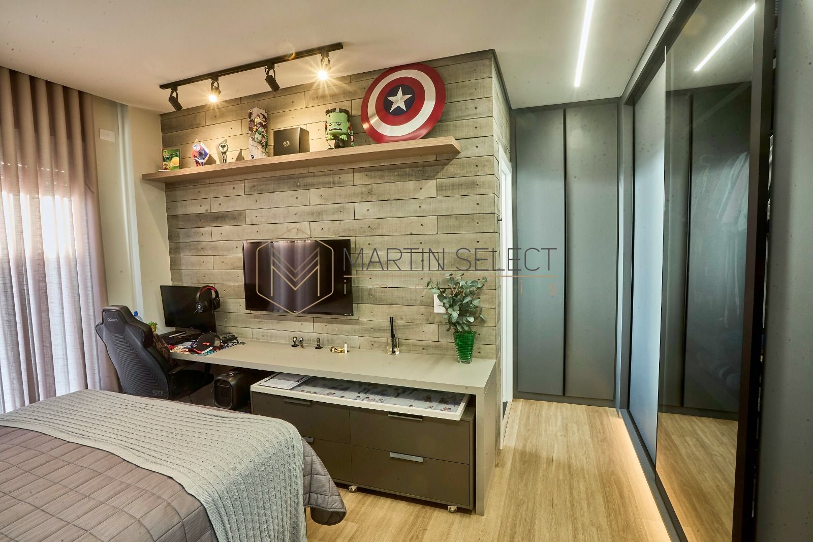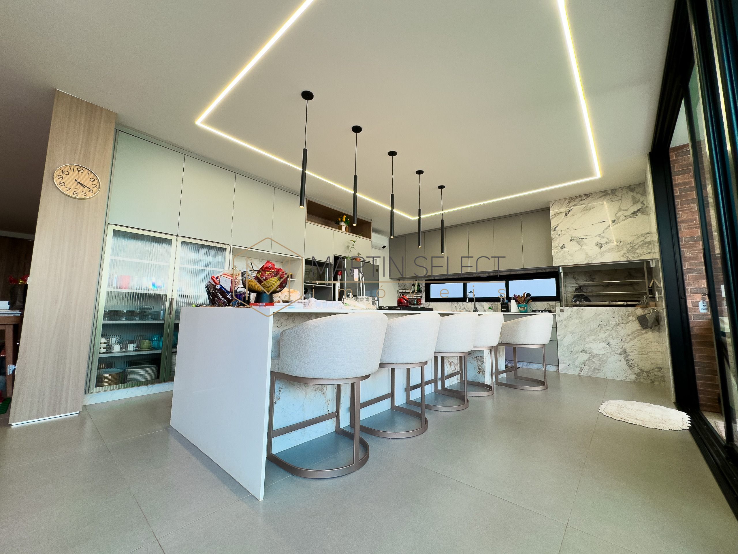 Esse imponente imóvel, foi pensado para famílias com até 3 filhos viverem com muito conforto em 4 lindas suítes no piso superior, além de uma suíte multiuso no térreo, hoje utilizada como escritório.